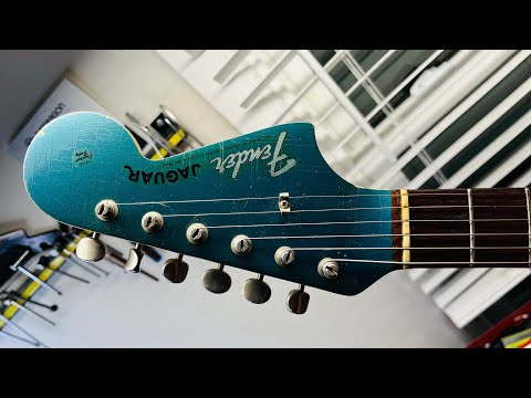 Uncle Larry tweaks on a poor old neglected 64 lake placid blue jag with matching headstock that he has had laying around for ages